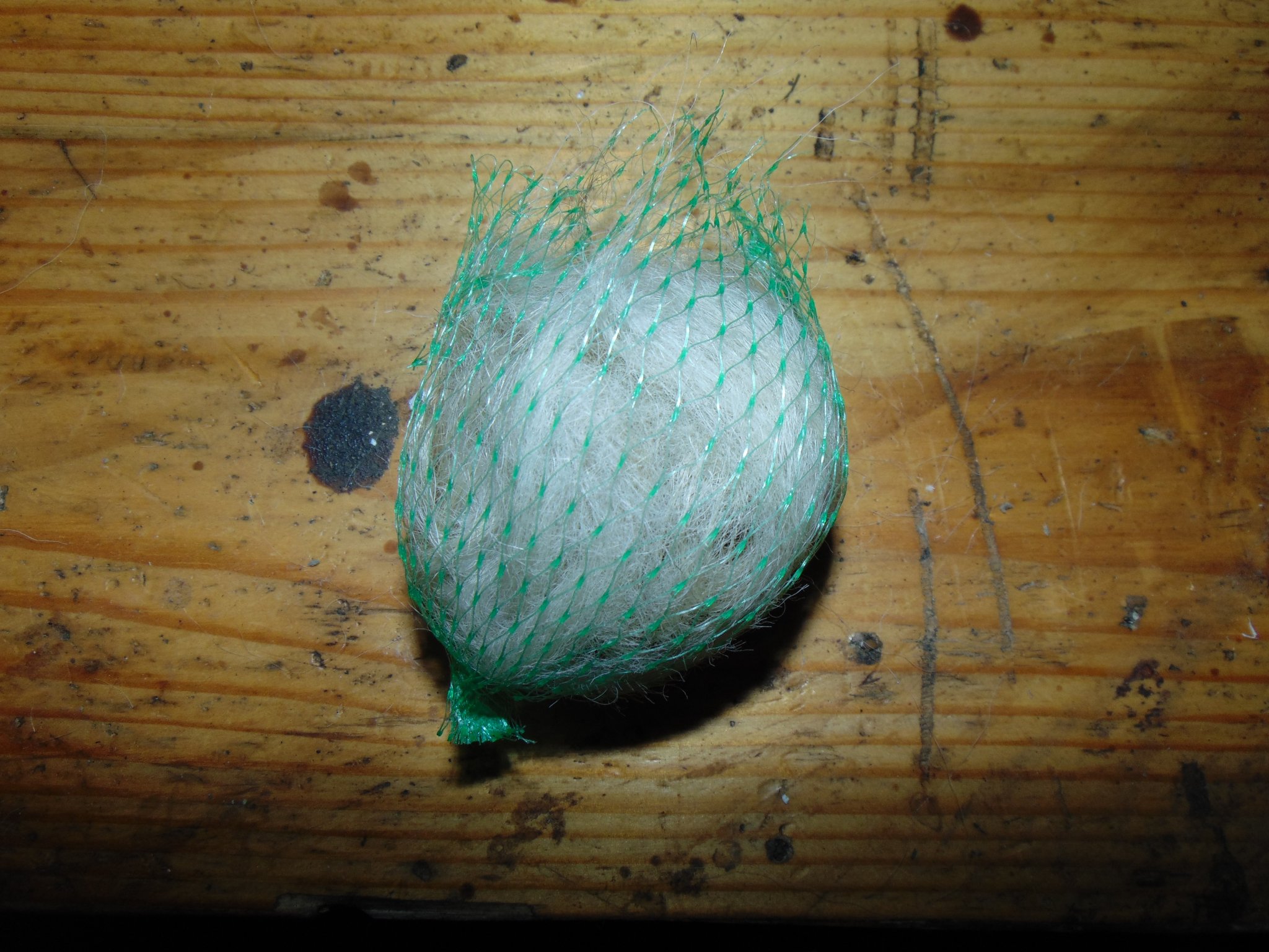 - Vágjuk/tépjük a szőrt kisebb darabokra, majd töltsük meg vele a hálót.