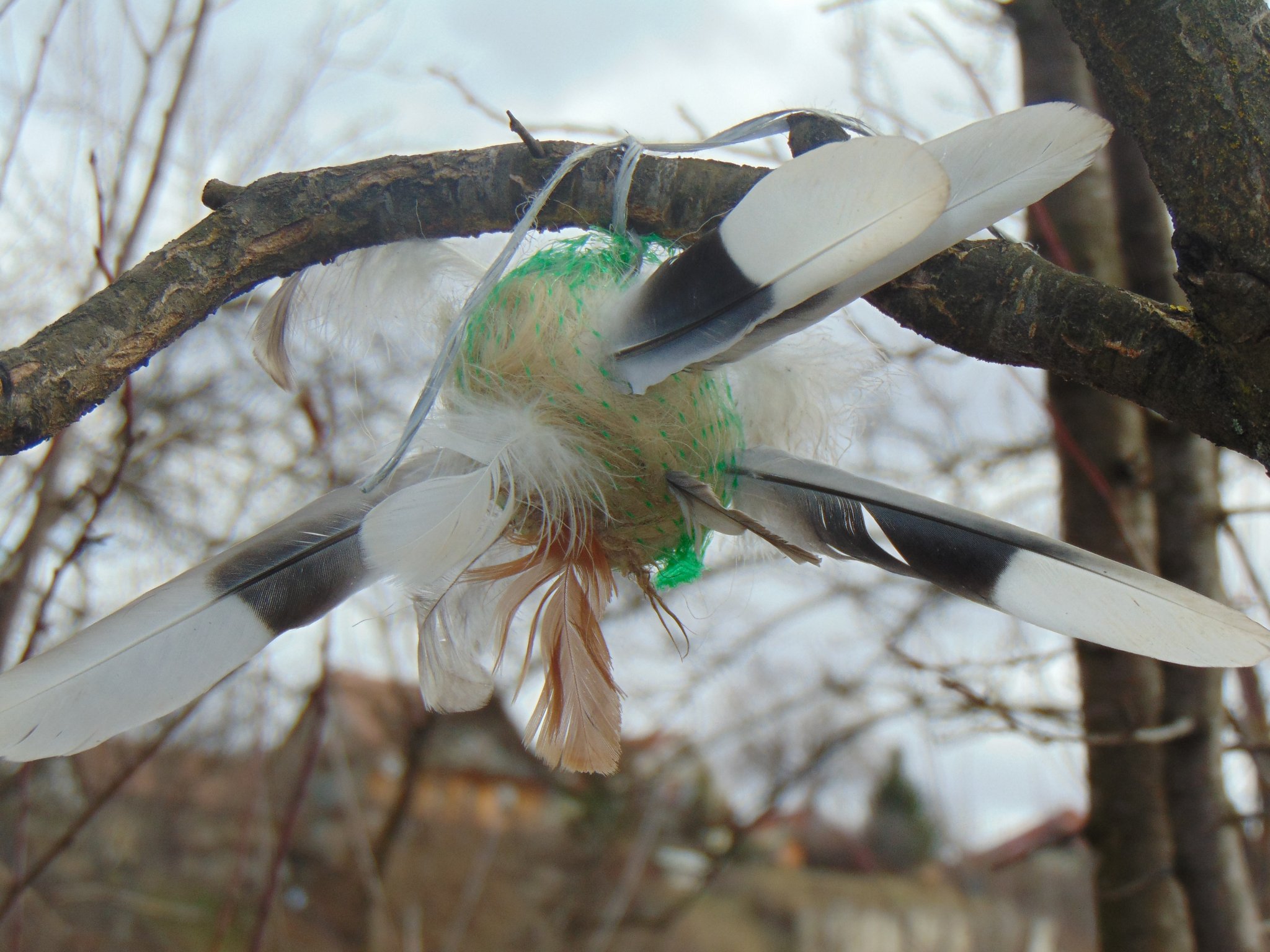 4. Végül helyezzük ki a fészekanyagcsokrot egy olyan helyre, ahol a madarak biztonságosan válogathatnak belőle.